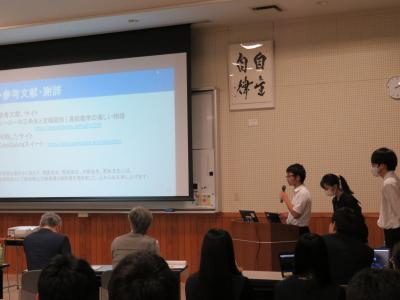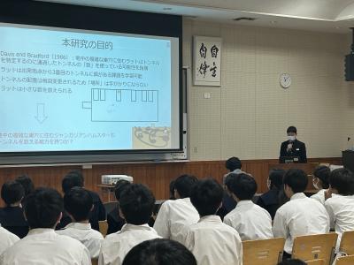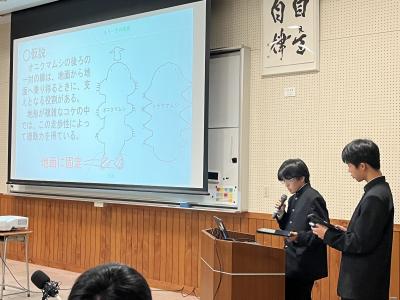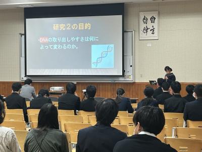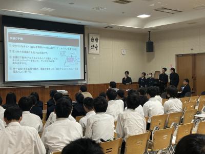 発表を聞いていた理数科1年生は、自分たちも中学生に負けていられない、と研究への意欲を高めていました。忙しい中、研究発表をしてくださった中学生のみなさん、誠にありがとうございました。