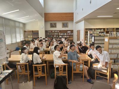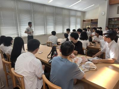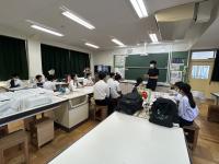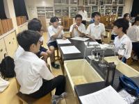 7月28日(金)探究活動の普及を目的とした本校「究める探究教室」事業の一環で、理数科1年の生徒が、国府中学校、松東みどり学園をそれぞれ訪問し、中学生の探究活動へのサポートを行いました。