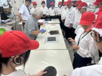 石川樹脂工業では、手作業で行われる樹脂の塗装や、生成AIによって自動化が進み、業務が効率化したロボットによる樹脂の成型作業を見学しました。参加した生徒からは、「人がいなくて効率的に作業が進んでいくことに驚いた。一方で機械を作っていくのは人間である。自分もこれから発想力を磨いていきたい。」という声が聞かれ、参加した生徒のものづくりへの関心が高まりました。