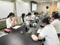8月8日(火)金沢大学において「理学の広場」が開催され、参加を希望した1年生が、数学,物理,情報・計算科学,化学,生物,地学の6種類のセミナーに分かれ、各研究室の大学生・大学院生に指導していただきながら、実験等の体験に参加しました。