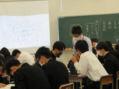 (2) 「現代の国語」(3限;理数科1年生対象)では、他者の文章の批評を通して、相手に自分の意見を伝える授業が行われました。次年度の課題研究発表の際に必要となる、相手に分かりやすく説明する力を高めることができました。