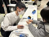 小松高校のブースでは、生徒達が子供たちに対して、優しく丁寧に、を心がけて説明を行いました。50人を超える小学生達が来てくれて、楽しみながらとても熱心に実験とものづくりに参加してくれました。