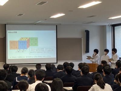 <「3×3ルービックキューブにおけるねじりの判別」口頭発表の様子>