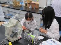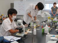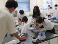 7月25日(月)26日(火)、理数科2年生が参加し、石川県立大学で「大学実験セミナー」が行われました。コロナ感染予防対策として、1クラスを2つの班に分けて、1日目は1班がセミナーB、2班がセミナーAに参加、2日目は1班がセミナーA、2班がセミナーBに参加することで、全員がAとBの両方のセミナーに参加することができました。