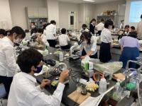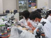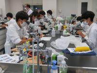 セミナーAでは食品科学科准教授小柳喬先生が、「食品に含まれる微生物についての講義と実験」の指導してくださいました。食品生物学者になることを目標に、培養してある7種類の菌を加熱固定して、グラム染色をしてから顕微鏡で観察し、菌の持つ性質を調べて、結果についてディスカッションし、同定しました。生徒からは、「実際に菌の同定をするプロセスが興味深かった。」「もともと食品分野に興味があり、セミナーを通してさらに学びたくなった。」「普段見ることのできない菌や酵母などを顕微鏡で観察し、その特徴から種まで推定できて楽しかった。」という声が聞かれました。