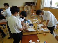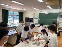 SSH4期目の探究活動の普及の一環として、理数科1年生が7月29日(金)美川中学校、8月1日(月)午前に中海中学校、午後に松東みどり学園を訪れ、「高校生と究める探究教室」を開催しました。