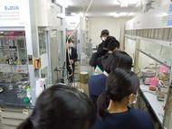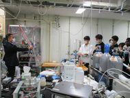 金沢大学では、数物科学類とフロンティア工学類の研究室訪問を行いました。大学の先生方は研究室や実験装置などについて丁寧に説明してくださり、生徒たちも熱心に質問していました。先生方も優しく丁寧に質問に答えてくださり、生徒たちはとても喜んでいました。