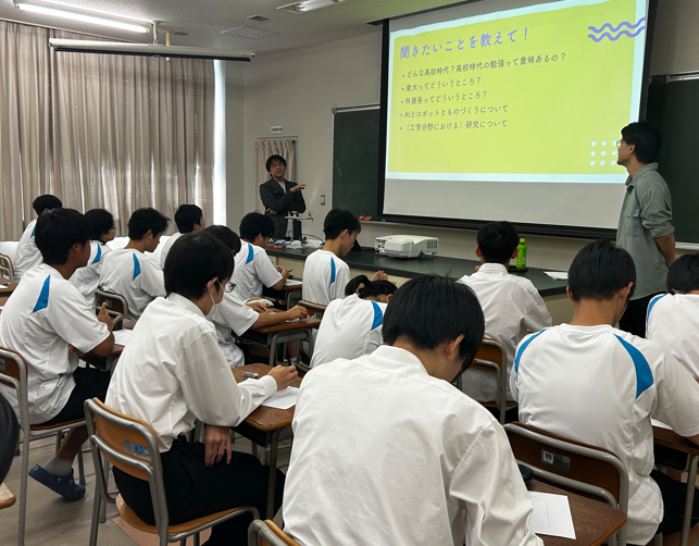 高校で培った理数科の基礎力を活かし、幅広い分野に挑戦した経験を紹介。学問だけでなく、人との出会いや様々な活動を通じて視野を広げることの大切さを伝えてくださいました。
