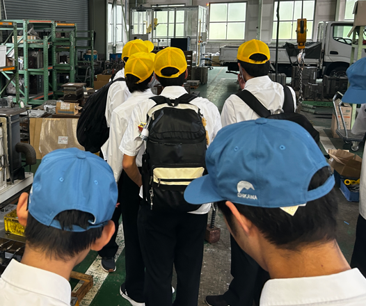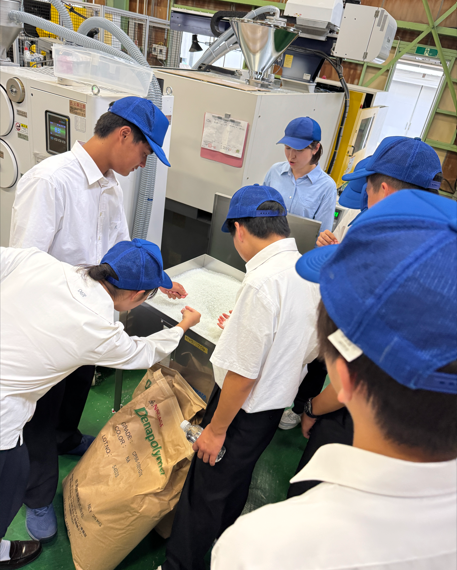 見学では、射出成形機や産業用ロボットによる自動化の様子を間近で体験しました。効率的かつ精密な作業が進む現場に、生徒たちは大きな驚きと関心を寄せていました。