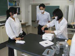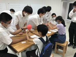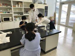 今年は新型コロナウィルスの影響で密を避けるために募集定員10名としました。それでも、10名の小学生が参加してくれて、高校生が考えた4つ実験(「表面張力の実験」、「重曹で入浴剤をつくろう」、「重曹とクエン酸を混ぜるとどうなる?」、「ホワイトボードマーカーで書いた絵を水に浮かべよう」)に対して、熱心に質問したり、楽しそうに実験に取り組んだりしてくれました。高校生たちもとても充実した様子でした。
