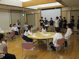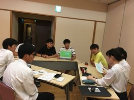 夕食後は、DSHS生が共同研究の概略についてプレゼンし、この内容について質疑・討議を行いました。そして、小松高校生は自分たちが現在行っている課題研究についてそれぞれ説明し、意見交換を行いました。活発な意見交換が行われ、消灯時間になったとき、みんなとても残念そうでした。