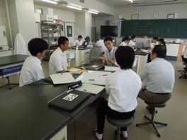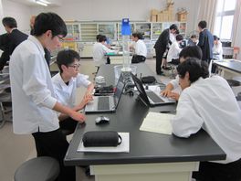 これから、この内容を踏まえ、グループごとにテーマを決めて探究活動を行います。2年時「課題探究Ⅱ」で行った課題研究の経験を生かして、どの生徒もテキパキと実験計画を立てて、実験器具を準備し、仮説を立て、協力しあいながら研究を始めていました。