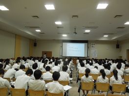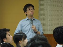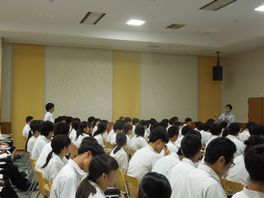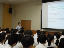 キネシンやATPアーゼ、DNAポリメラーゼ、鞭毛モーターなどの生体内における分子モーターについての最先端の研究についてわかりやすく説明してくださいました。また、東北大の紹介や研究者についても丁寧に説明していただきました。多くの生徒が、受験勉強へのモチベーションが上がったと話していました。