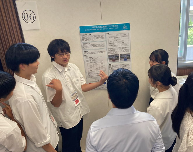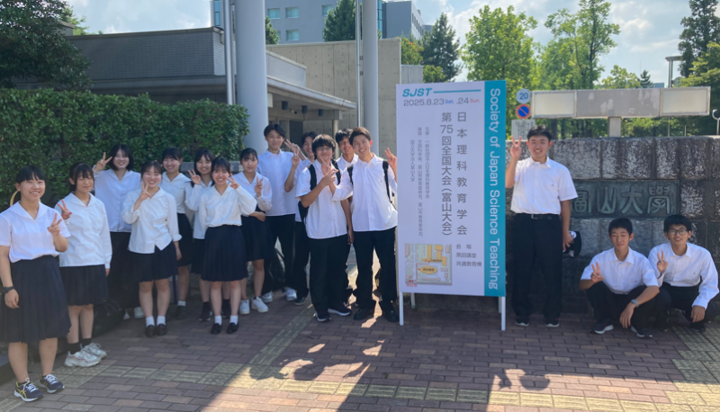 日本理科教育学会第75回全国大会(富山大会) において、理数科2年生理科の研究5グループが課題研究の成果を発表しました。全国の研究者や教育関係者が集う場で、高校生が自らの探究を披露できる貴重な機会となりました。