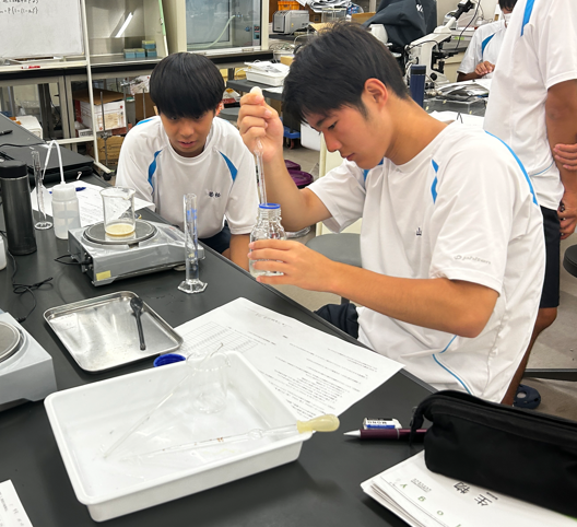 「課題探究Ⅰ」では探究の進め方を実験を通して学んでいます。
