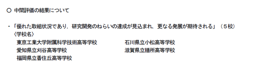 スーパーサイエンスハイスクール(平成28年度指定)の中間評価について:報道発表資料