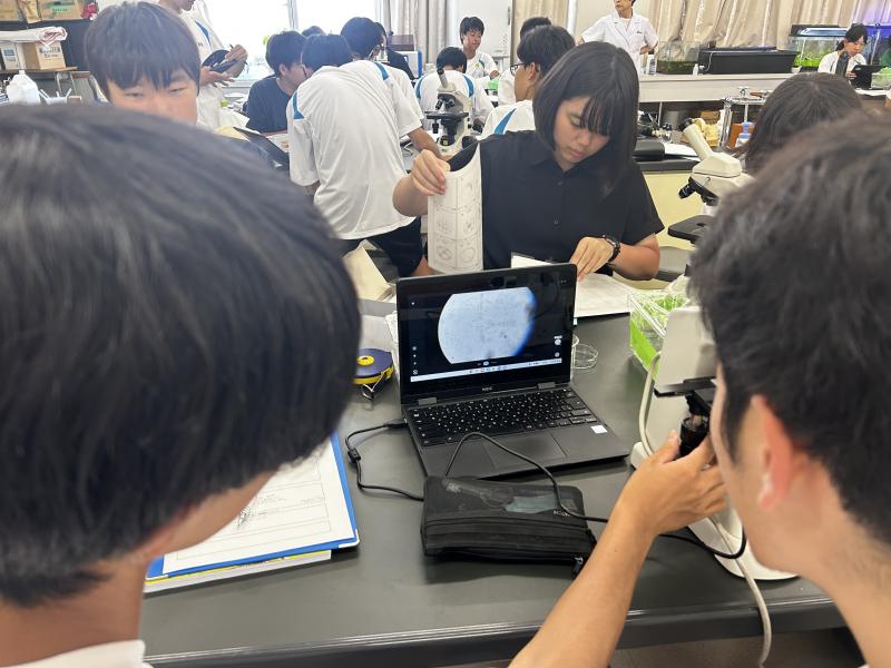 プルテウス幼生をすべての班で観察することができ、生徒たちはみんな喜んでいました。