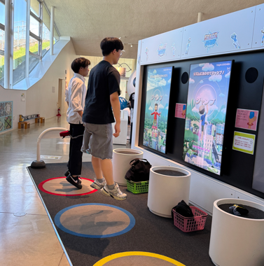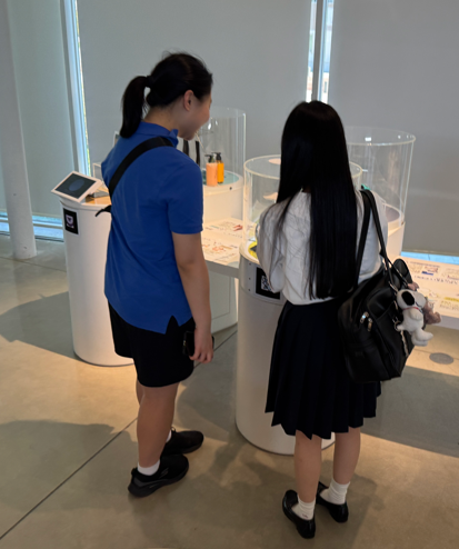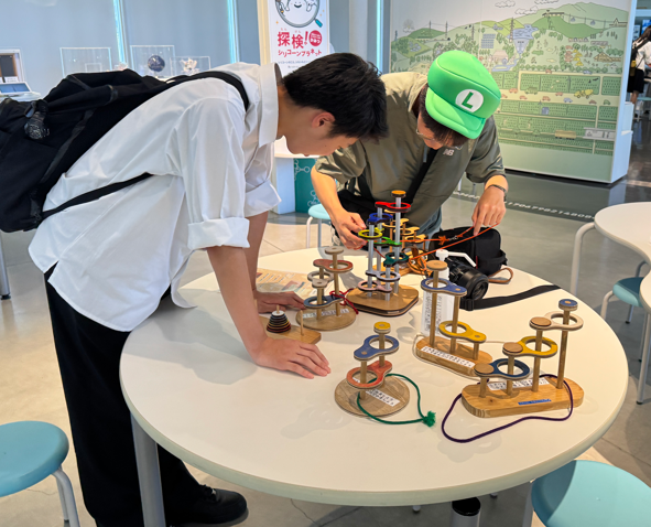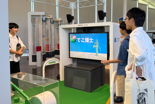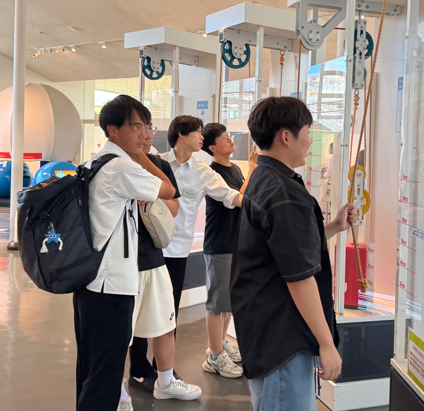 サイエンスヒルズこまつの中を案内し、展示されているものを解説しながら韓国の生徒と一緒に体験し、原理についてディスカッションしていました。英語が得意な子もいれば苦手としている子ももちろんいましたが、どの子もコミュニケーションを取りたいという思いが韓国の高校生に伝わり、みんなが笑顔で過ごすことができました。