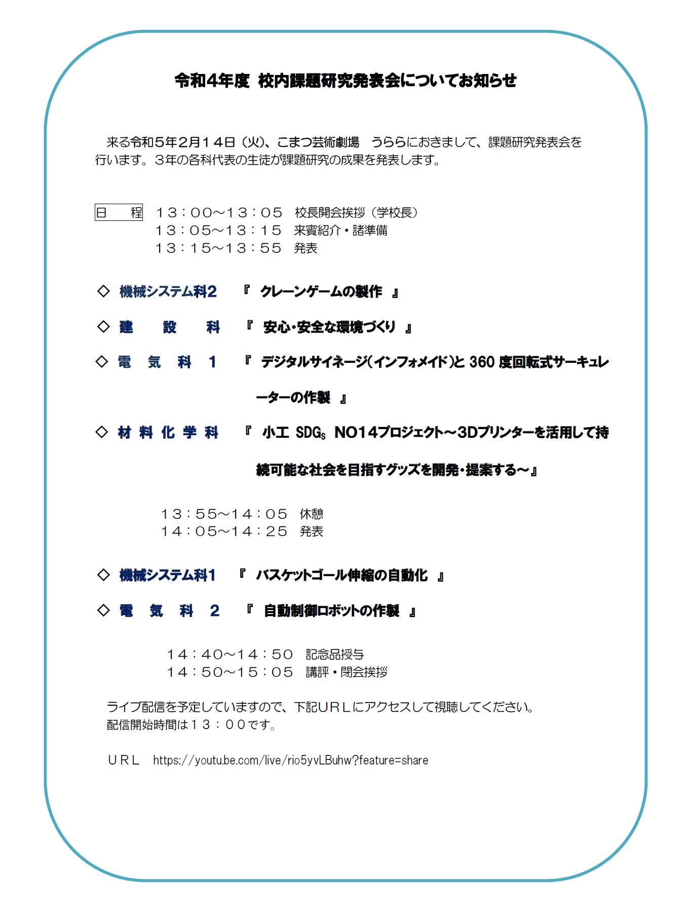 令和4年度 1年生 工業技術基礎 探究活動発表会(2023/0/3/09)