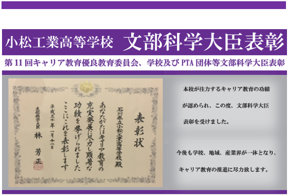 本校は、工業の専門高校として現在「4つの学科」を有し、地元産業の発展に貢献できる意欲的な生徒の育成を目指し、昭和14年に創立された南加賀唯一の工業高校です。