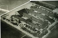 小松航空プラザに建つ 開校当時の小松工業校舎 姉妹校記念旗 | ||