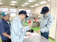 工場にあるような大きいタンクの小型版を使って実習をします。