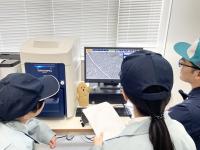 液体にどんな元素が含まれているか、どれくらいの濃度で含まれているかなどを機械を使って調べます。