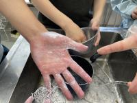 また、液体を反応させて、消しゴムを作ります。消えやすい消しゴムを作るための比率を探ります!