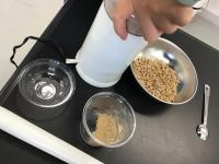 そのメスピペットを利用して、計量をする練習をします。