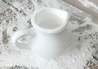 写真は、手のひらサイズのミルクピッチャーを作り、表面を整えているところです。