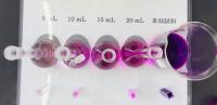 中和したときに色が変わる特別な液体を入れて、どれくらいで反応するかを見て確かめる実験です(写真は後日追加します)。