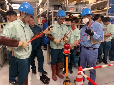 高圧機器操作体験、リレー試験、感電体験、絶縁耐力試験の操作体験等、企業を身近に感じてきました。