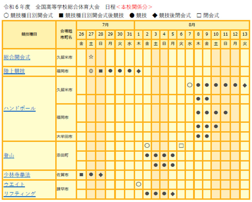 今年度のインターハイに本校からは、ハンドボール、少林寺拳法、陸上競技、ウェイトリフティング、登山が出場します。都合はあるかと思いますが、気持ちでは全校生徒で応援したいと思っています。