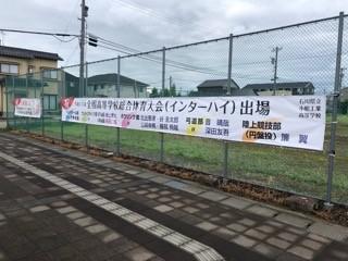 校地の北西の隅に下のとおり横断幕を追加で設置しました。インターハイ・全国大会出場をお知らせするものです。こんなにも多くの生徒が全国の精鋭達と切磋琢磨する機会を得てくれるとは嬉しい限りです。近くにお越しの際はぜひご覧ください。https://goo.gl/maps/89rmTsA7hkhN3V859