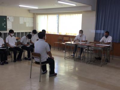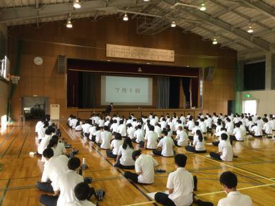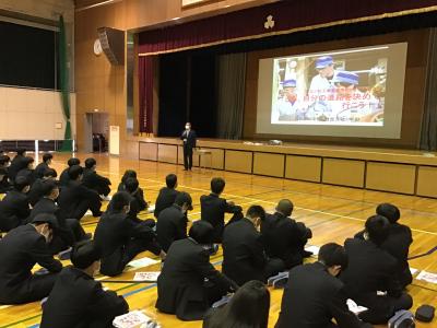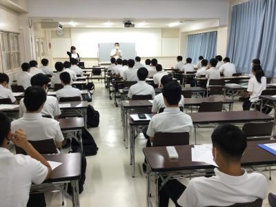 生徒たちは将来のこともあり、メモを片手に真剣に聞いていました。自分がいったい何をしたいのか?どう取り組めばいいか?など、進路決定に向けて、今一度きちんと考える良い機会になったと思います。しっかりと自己を省み、目標を明確にして前向きな進路決定につなげてほしいものです。