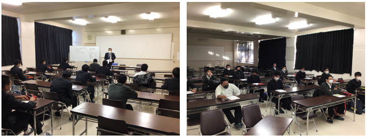 11月24日(火)に、2年生を対象として公務員説明会を行いました。公務員を志望するにあたって、公務員試験の概略や対策などに加え、自分自身で情報を収集することが重要だということも伝えました。企業への就職とはあらゆる面で異なるため、これからの行動が大切であると生徒は意識していたようです。