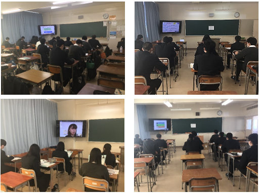3月23日(火)5、6限、各教室に設置されているモニターを使って、2年生を対象としたオンライン進路ガイダンスを行いました。進学希望者は希望した分野の上級学校の先生から学部学科の説明や求める学生像などのお話をいただきました。また就職希望者は、就職を考えるうえで行うべきことについての講話や履歴書の書き方の指導を受けました。