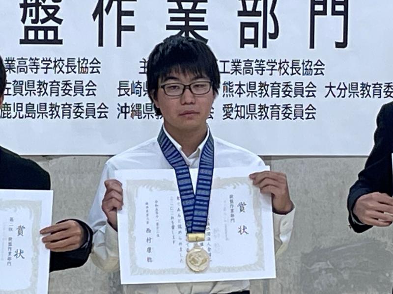 11/11(土)・12(日)に福岡県北九州市のポリテクセンター福岡で第23回高校生ものづくりコンテスト全国大会 旋盤作業部門が行われ、本校から出場した機械システム科3年 西手秀志君が見事第一位に輝き、6年ぶり3度目の栄冠を手にしました!