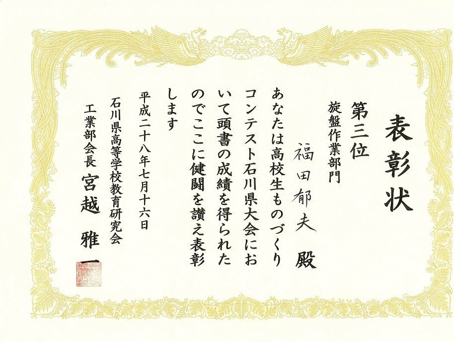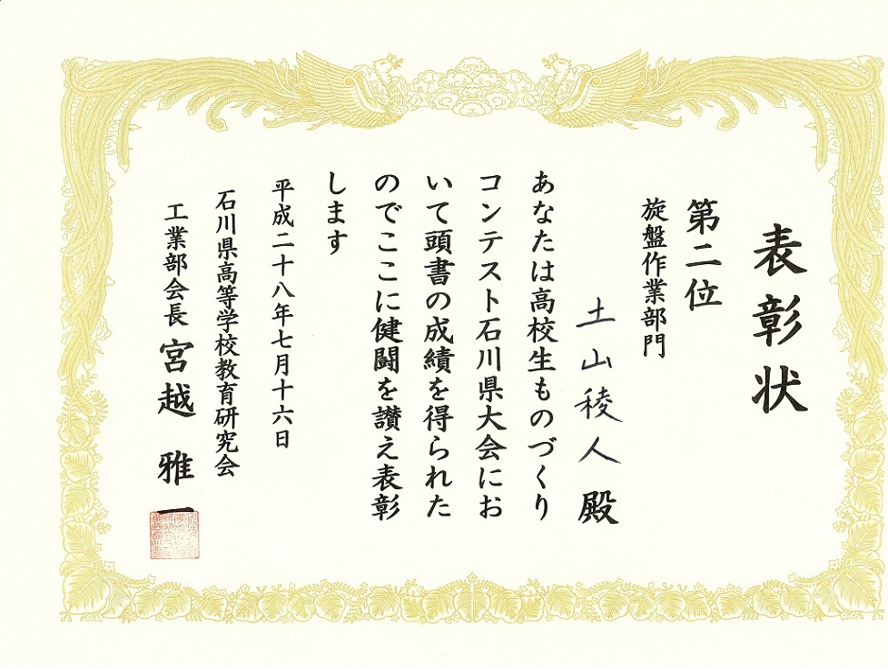 本校から石川県大会を勝ち抜いた機械科2年 土山稜人君が出場しました。
