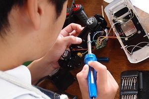 木場潟公園南園地(10月14日)でエンジョイエコまつりが行われ、電気情報部からは7人が参加しておもちゃの修理を行った。