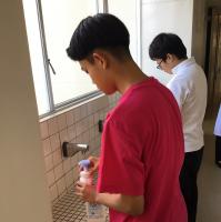 養護教諭からの依頼で、2学期からは保健委員と協力して、手洗い場の石鹸補充を行うことになりました。