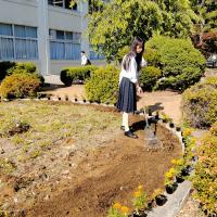 小松市の「花のまちづくり推進団体」として、本格的に本校正面玄関前の花壇づくりを始めました。