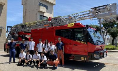 インターアクト部員の中で避難所ボランティアや、防災への関心のある生徒がいたので、夏休みを利用し小松市民防災センターの見学と防災体験学習へ行ってきました。