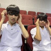 その後3Dメガネをかけ、飛び出して見える映像と振動を感じる椅子で地震の怖さを感じました。