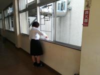 1年生全員で、工場棟への渡り廊下の窓拭きをしました。