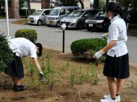 1・2年生部員で、花壇の草むしりを行いました。正面玄関前が少しさっぱりしました。