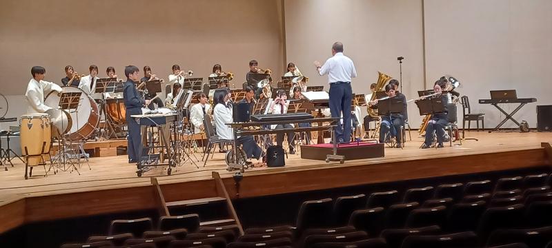 本年度、石川県吹奏楽コンクールに小松商業高校と合同で演奏し、金賞を獲得したことにより、定期演奏会でも一緒に演奏を披露しました。小松商業高校の皆さんには,28日に行われる本校の定期演奏会でも合同で演奏を披露していただきます。