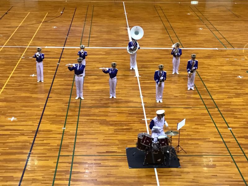 9名という少人数ながら堂々としたマーチングになっていました。定期演奏会では更なるマーチングを披露したいと思っている部員達です。