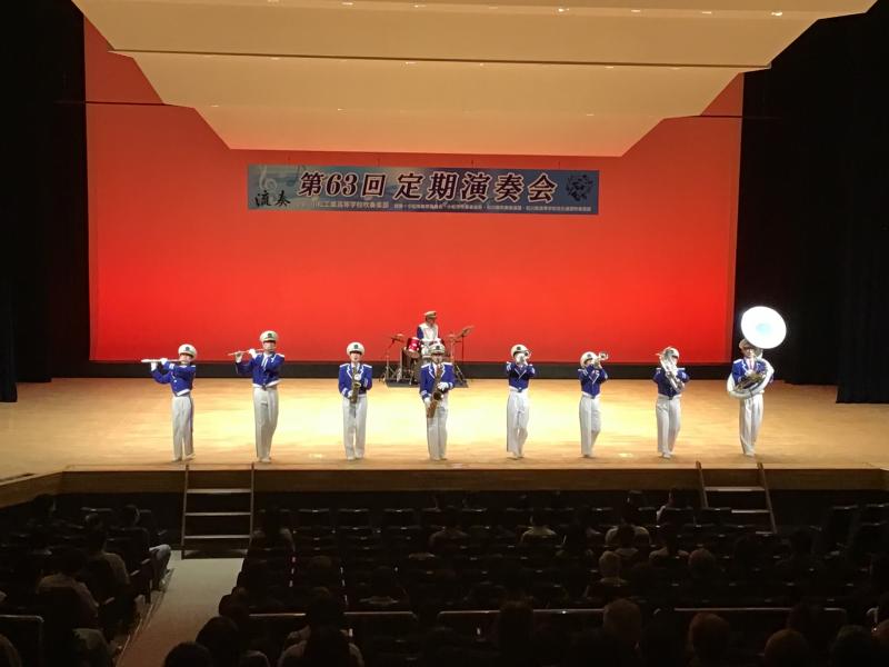 定期演奏会は1部に校歌やコンクール自由曲などでの座奏、二部では歌謡曲やポップス等での座奏、三部では流奏をモチーフにマーチングを披露しました。