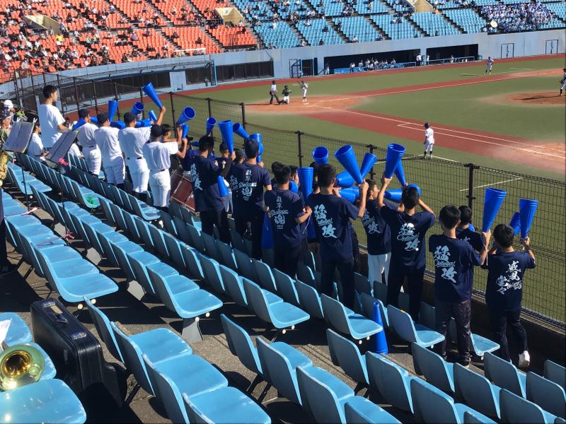 吹奏楽部として演奏での応援を行った。1回戦は9回裏で同点となり延長タイブレークの11回サヨナラで勝利した。翌10月13日(日) 金沢市民野球場にて準々決勝が行われ、連日の吹奏楽部の演奏応援をした。この日は7回コールドで勝利し、10月19日(土)の準決勝に進出した。
